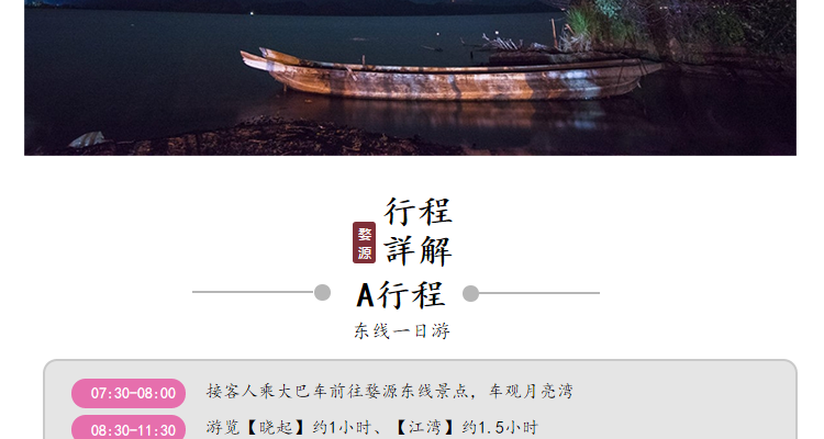 2、出团通知最晚于出团前1个工作日21:00左右发送,若能提前确定,我们将会第一时间通知您。
